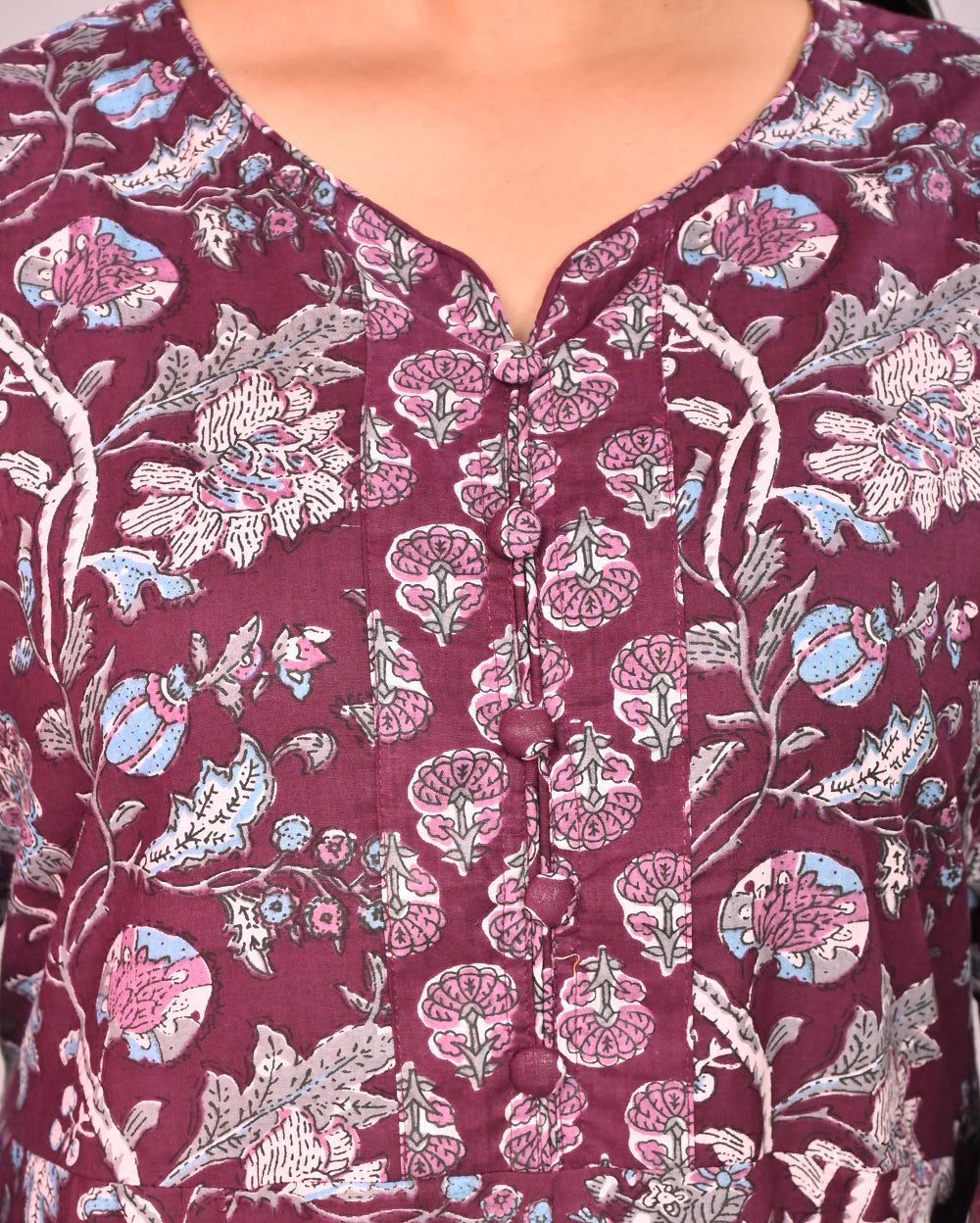 Red Floral Printed Cotton Anarkali Suit Set With Dupatta