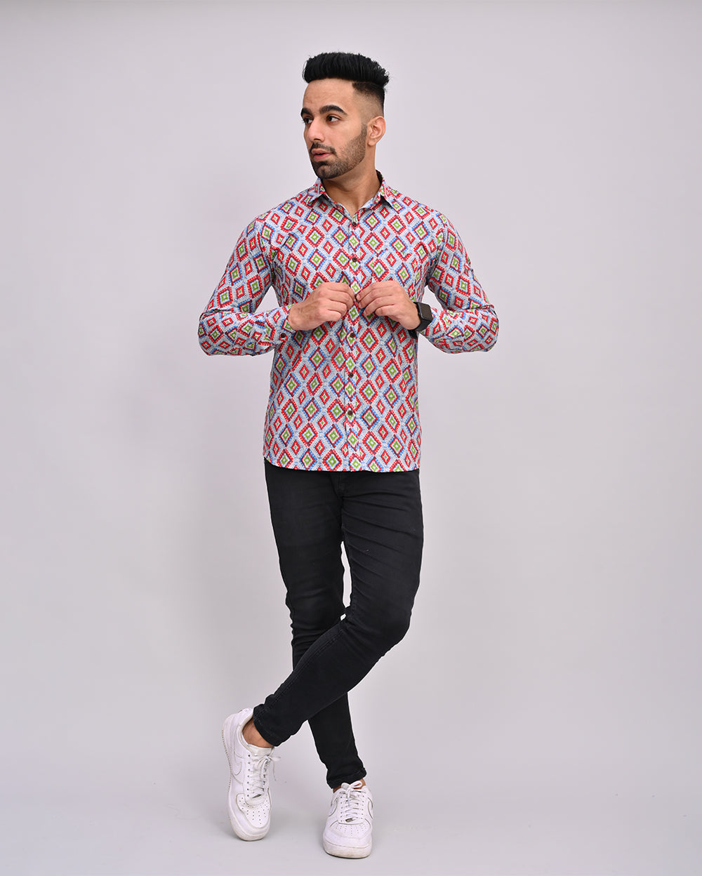 This Hand printed men's shirt is not just a fashion statement but also a celebration of traditional craftsmanship and artistry. Each piece is a labor of love, meticulously created to bring a touch of elegance and cultural appreciation to your wardrobe.