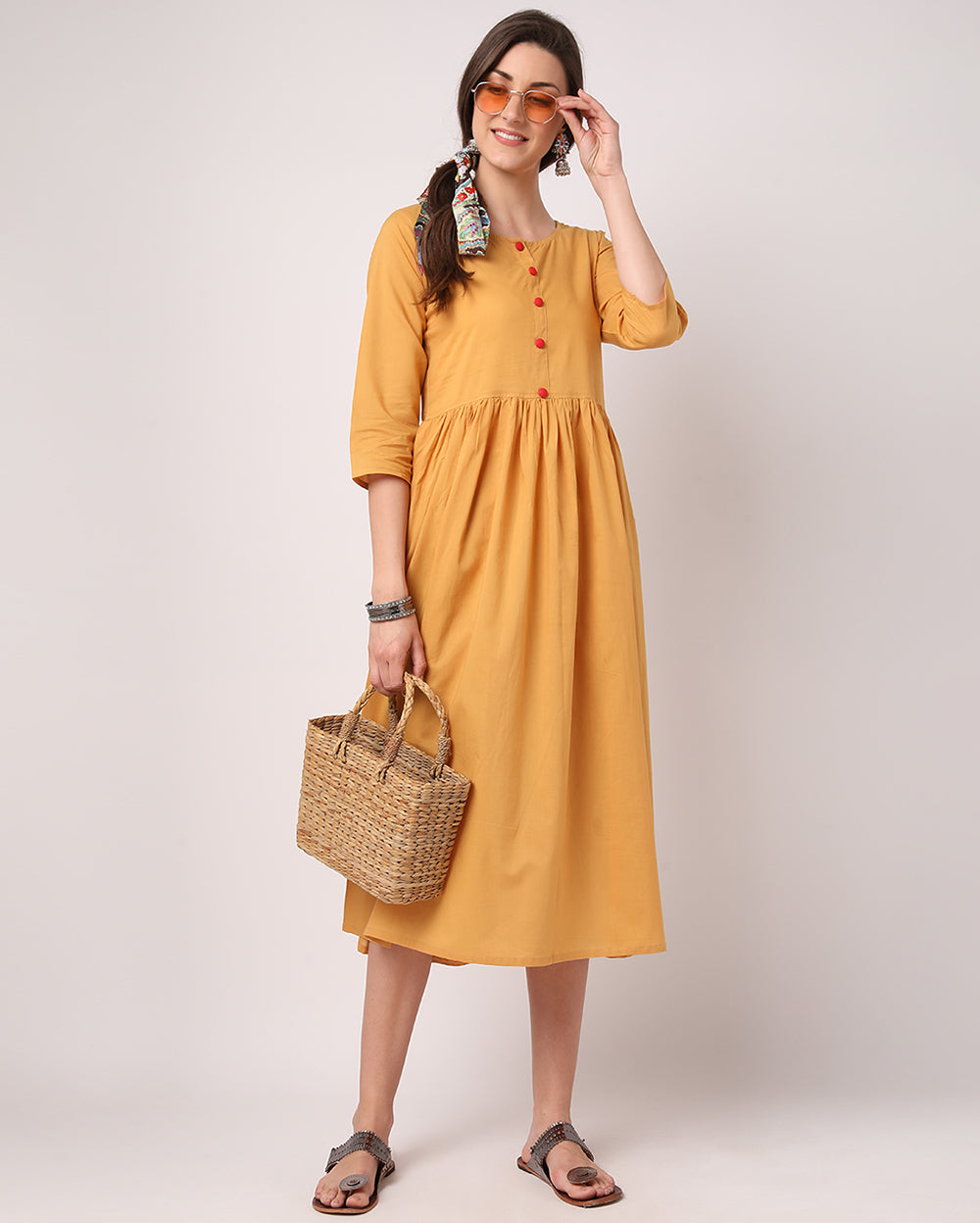 Solid Mustard Cotton Dress